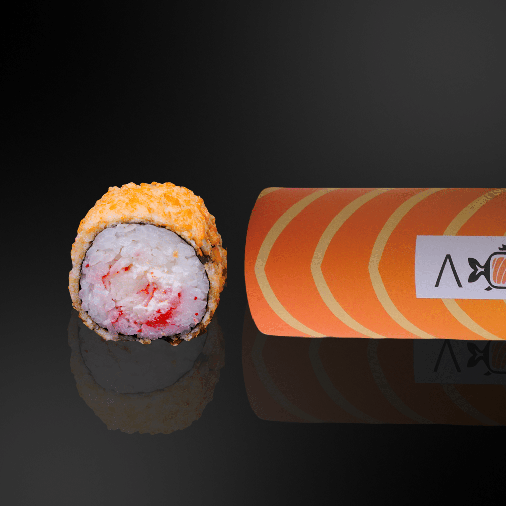 Крабовое мясо, сыр сremette, икра тобико