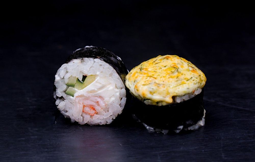 Креветка тигровая, сыр сremette, огурец, соус пивной