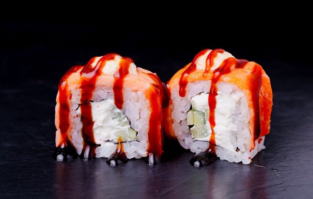 Сыр сremette, лосось, огурец, соус нежный, соус унаги