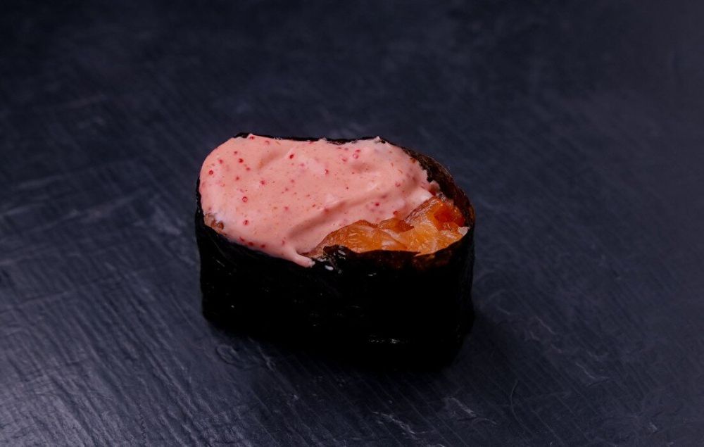 Рис с начинкой (угорь, курица, лосось, креветка, краб) и фирменными соусами. Сытно и вкусно.