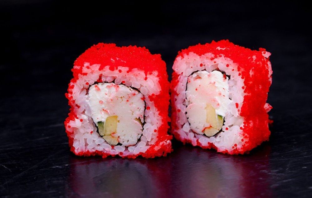 Икра тобико, крабовое мясо, сыр сremette, огурец