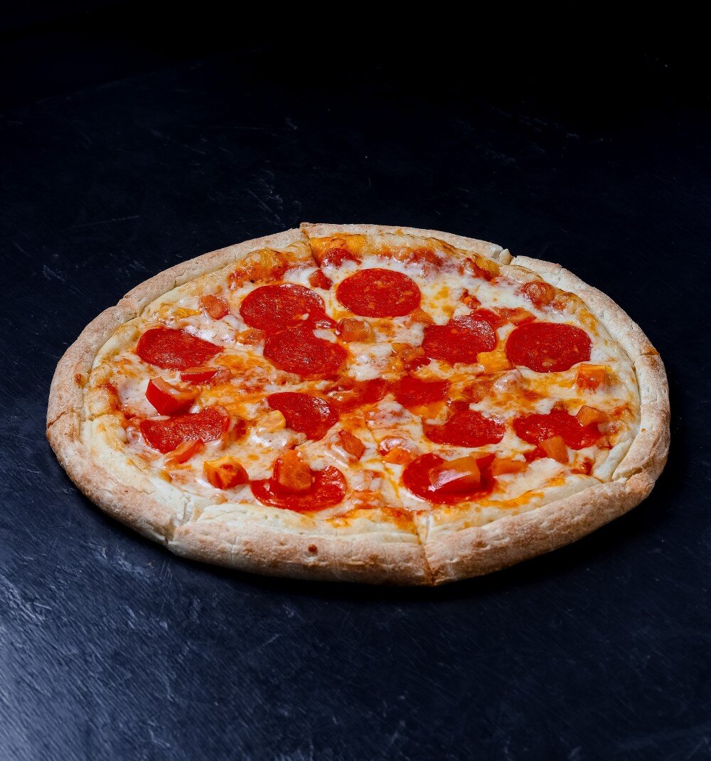 Моцарелла, пепперони, томаты, томатный соус (21 см/30 см)