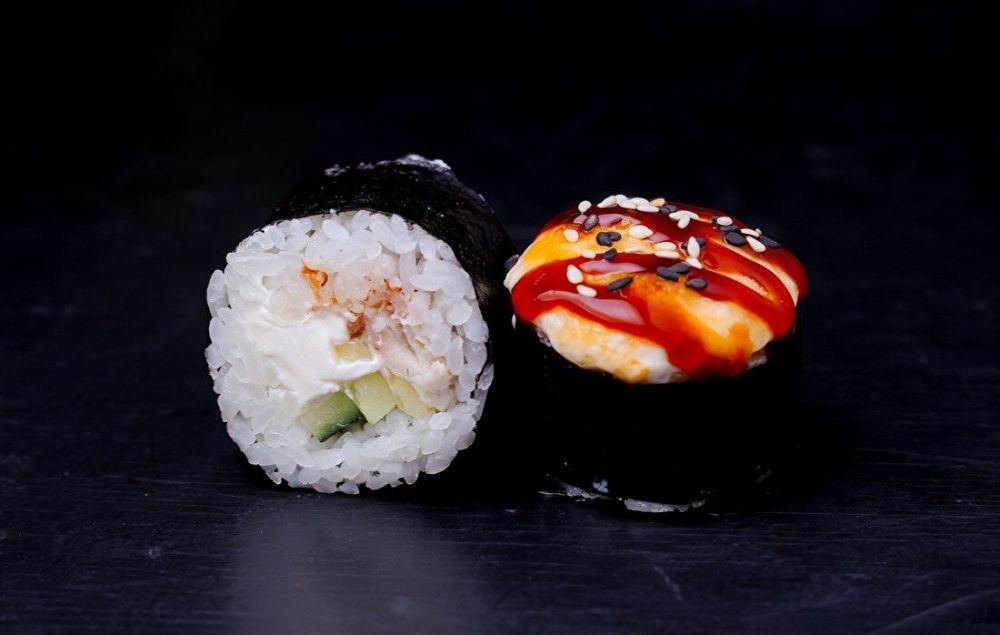 Угорь, огурец, сыр сremette, соус сливочный, соус унаги, кунжут